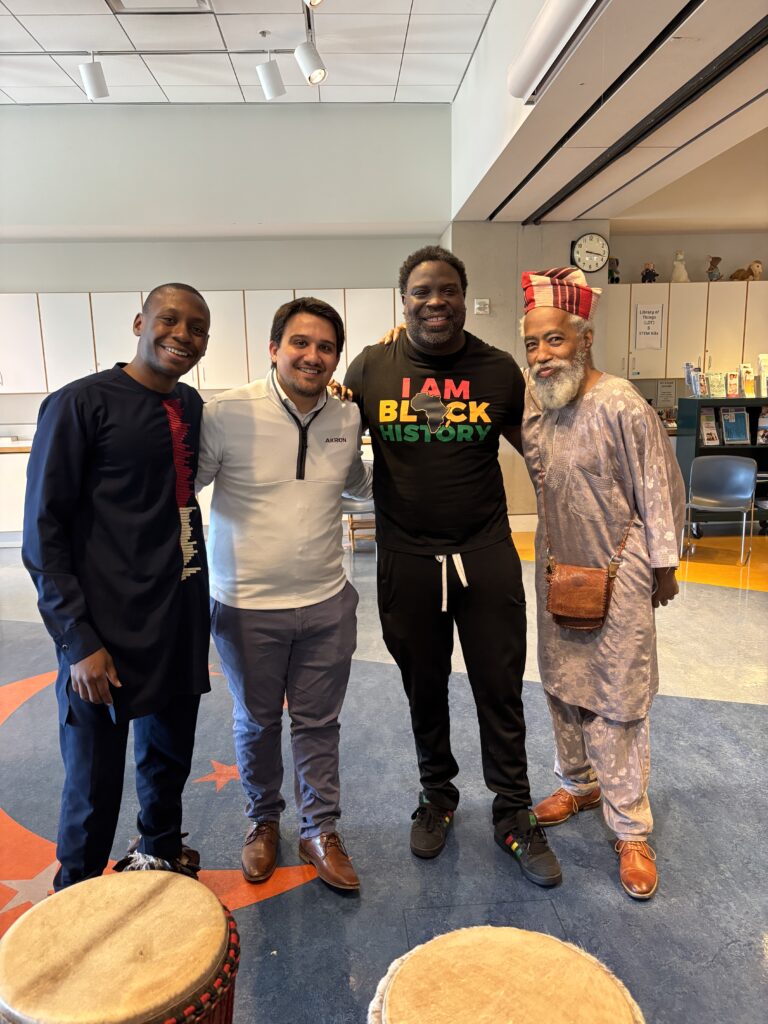During the session, Manns led drumming instruction while Khemet guided call-and-response rhythm games. Trust Drum Circles (TDC) founder Maseh Nchang supported facilitation, helping participants select and play instruments and also participating in drumming.