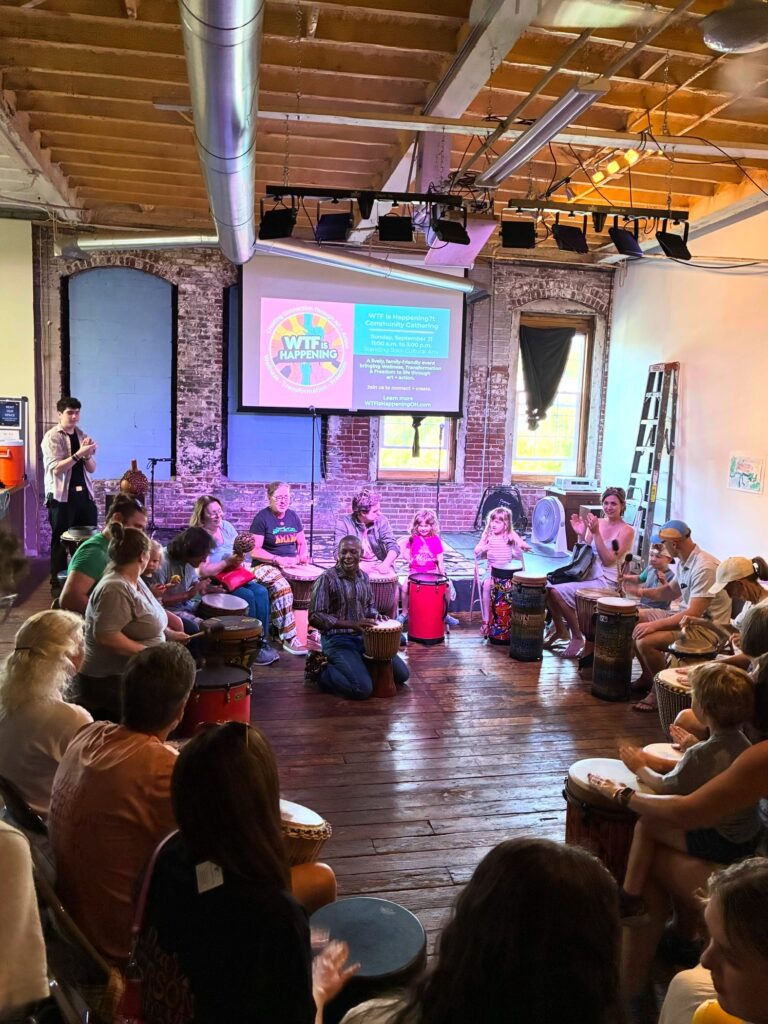 This image illustrates the inclusive and community driven environments that drum circles invite.