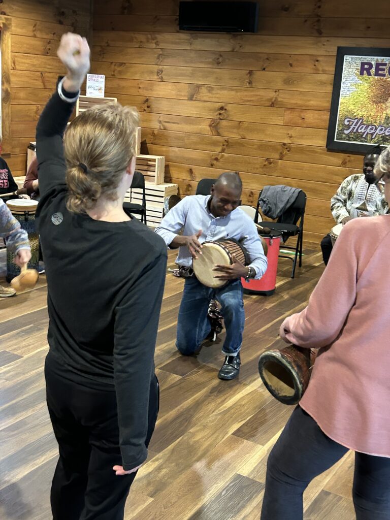 Nchang facilitating and playing drums. Photo credit: Laura Broyles