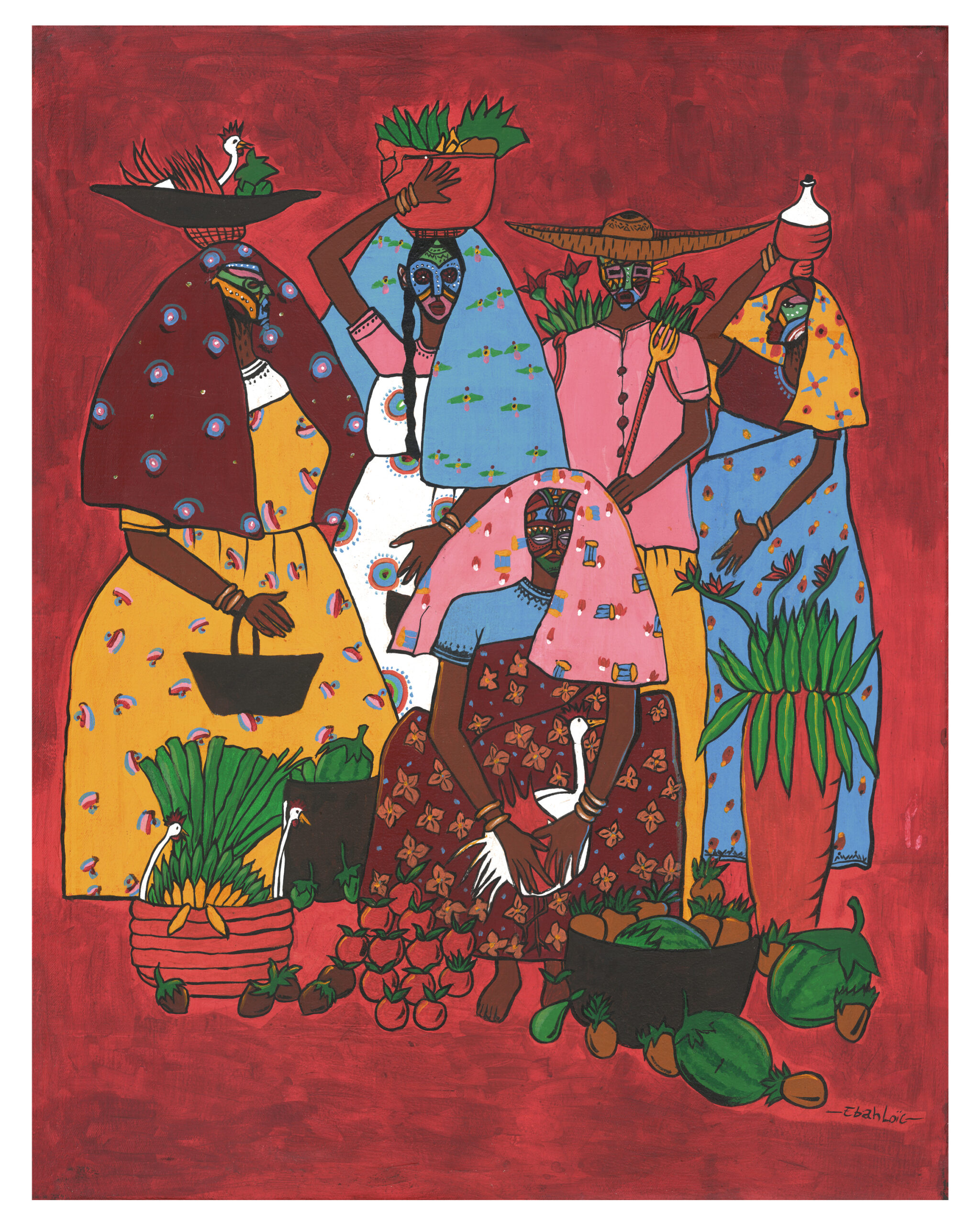 Loïc found his visual language—earning top honors two years in a row and planting the seeds for his professional journey. In 2012, he moved to Yaoundé to pursue art full-time and now exhibits internationally and shares his gift through workshops at Galerie d’Art AfroBantu. His work is both technical and deeply human—a celebration of identity, persistence, and artistic freedom.